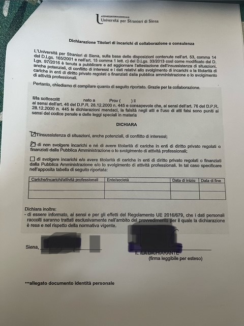 | ROSSI RITA |  |  | CoCoCo | D.R. n. 546/2025 | Sì | Centro Linguistico di Ateneo - Centro CLUSS | dal 01/10/2025 al 19/12/2025 | Attività di formazione in italiano L2. | € 14.400,00 | No |
